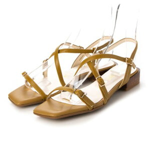 [2022春夏新作]きりっとしたスクエアトゥベース、華奢見えする細ストラップのシンプルなデザインに、3本それぞれに付いた小さなベルトバックルがポイントのローヒールサンダル。コードデザインは2022年春夏もトレンド。まろやかカラーや