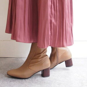 ストレッチ素材を使った履きやすいショートブーツ。足首周りがスッキリ見え、ボトムの裾も気になりません。ヒールは太めに設計しているので安定感のある履き心地です。シンプルなデザインなので幅広くコーデできます。※本革(天然皮革