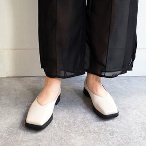 サッと履ける気軽さでデイリーユースしやすいフラットシューズは、足元がカジュアルになりがち。サヴァサヴァから登場したこのスクエアフラットシューズは、そんなイメージを払拭する辛口モードな佇まい。コーデに一点投入するだけで