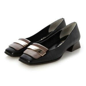 甲にあしらったメタルパーツがアクセントになったローヒールパンプス。エッジの効いたスクエアトゥで洗練された大人の足元を演出します。品のあるデザインでオンオフ問わず活躍してくれる一足です。※本革(天然皮革)の商品について素