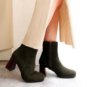 スエード調のシルキーレザーを使った上品なサイドゴアブーツ。ゴム部分をレザーで隠したデザインで、カジュアルになり過ぎないきちんと感を演出。チャンキーヒールでトレンドのレトロスタイルにマッチする一足。※本革(天然皮革)の商