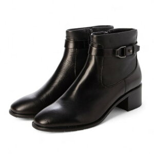 透明感あるアニリン調レザーで高見えするショートブーツ。ゴールドの金具が上品なアクセントになっています。筒部分はソフトなシープレザーで履き心地にもこだわりました。短めの丈感でパンツからスカートまで幅広くコーデできます。