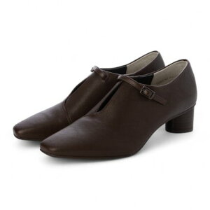 アシンメトリーなスクエアトゥと個性あるヒールとの組み合わせで少しひねりの効いたシューティースタイル。甲にあしらった華奢なベルトがワンポイントになっています。また、少し開きのあるカッティングで抜け感をプラス。靴下との相