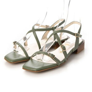 [2022春夏新作]きりっとしたスクエアトゥベース、華奢見えする細ストラップのシンプルなデザインに、3本それぞれに付いた小さなベルトバックルがポイントのローヒールサンダル。コードデザインは2022年春夏もトレンド。まろやかカラーや