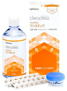 クリアデュー ハイドロ:ワンステップ 内容量 4週間パック(28日分) (I)消毒・中和錠×28錠、(II)溶解・すすぎ液 360ml×1本。