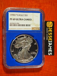 1998 P PROOF SILVER EAGLE NGC PF69 ULTRA CAMEO BLUE CORE HOLDER商品について販売者コメント「掲載されている美しいコインに!」コイン:アメリ...