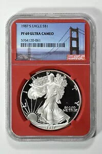 1987 S Proof Silver Eagle PF69 ULTRA CAMEO - Red Core, Golden Gate Bridge Label!商品についてコインアメリカンイーグル構成...