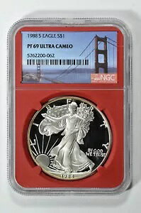 S $1 American Silver Eagle 1oz NGC PF 69 Ultra Cameo Red Core商品についてコインアメリカンイーグル構成シルバー1988年ストライクタイププルーフ繊度...