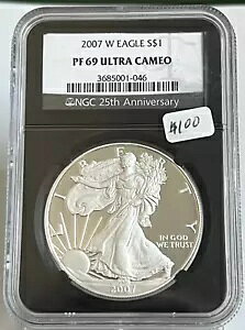 2007 W AMERICAN SILVER EAGLE $1 NGC PF 69 ULTRA CAMEO BLACK CORE商品について販売者メモ「25周年記念ラベル、ブラックコア」組成:銀認証番号:3...
