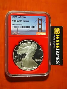 PROOF SILVER EAGLE NGC PF69 ULTRA CAMEO GOLDEN GATE BRIDGE LABEL RED CORE