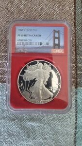 PROOF SILVER EAGLE NGC PF69 ULTRA CAMEO GOLDEN GATE BRIDGE LABEL RED CORE商品について組成:銀認証番号:6308668-078刻印...