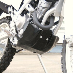 美しさと強度を両立したタフなアンダーガード エンジン下部を岩や障害物よりガードし、フレームのヘコミ、クランクケースの破損を防止します。 軽量のため車体に負担をかけません。 3mm厚強化特殊樹脂を使用しているのでアルミ並の強度