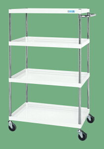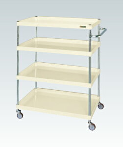 【組立式】 【組立費別途】 《商品説明》●ボルトレスで組立簡単。棚板を逆さにするだけで、皿型・フラット型と組み替えることができます。静粛性・始動性に優れるサイレントエラストマー車を採用。ワンタッチでワゴンを止めるフット