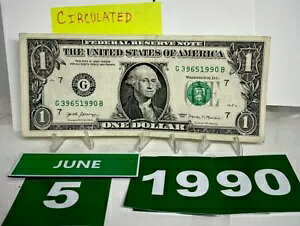 Birthday Dollar June 5 1990. Fancy Serial Number Circulated Note Gem商品について額面 $1循環/非循環 循環紙幣の種類2017年等級指定 見かけ/正味グレードなし製造...