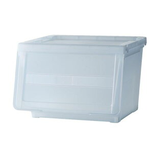低い位置での開け閉めが楽。半透明なので、中のものが見えて探しやすい。深型タイプです。DCMスライドボックスレギュラーサイズと対応できます。サイズ:約幅45×奥行40×高さ31cm。カラー:クリア。