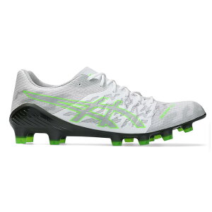 サッカースパイク。アシックス(asics)。カラー ホワイト×グリーンゲッコー。アッパー 人工皮革、合成樹脂。アウトソール 合成底。