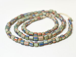 芯が薄緑色の母胎表面に3色の縞模様が施されている、柔らかな雰囲気のストライプビーズです。ハンドメイドアクセサリ製作用におススメです。写真はサンプルとさせていただきますが、ほぼ同様の