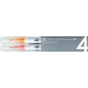 毛筆タイプのカラーペン。イラスト、漫画等幅広い用途にご利用いただけます。細書き、ベタ塗も可能です・ 型番 : 呉竹 Kuretake ZIG ZIGリアルブラッシュ4VA RB-6000AT/4VA 【キャンセル不可・北海道沖縄離島配...