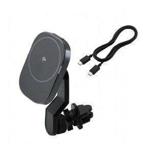 【商品概要】■マグネットで固定するだけでQi2対応スマートフォンを充電できる、Qi2規格ワイヤレス充電機能付き車載ホルダーです。■最大出力15WでiPhoneを充電可能。従来のQi規格と比べて高速充電を実現しています。■マグネットでスマー