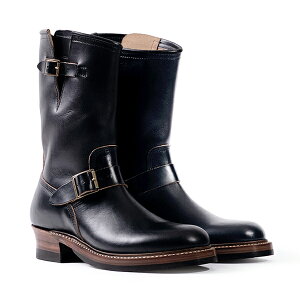 ウォータープルーフプルアップレザーを採用したショートエンジニアブーツ。トラディショナルなデザインでバイクでもタウンユースとしてもお使い頂けます。程よい筒周りで足入れをしやすくし履きこむほどによく馴染できます。フロントストラップにワンス...