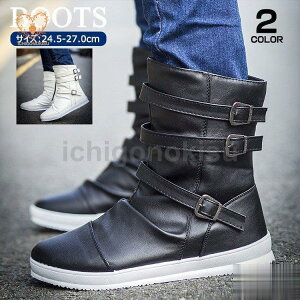エンジニアブーツ メンズ サイドジップ ベルト付き メンズ靴 シューズ ミリタリーブーツ PUレザー ライダース色 黒 白サイズ 39(24.5cm) 40(25.0cm) 41(25.5cm) 42(26.0cm) 43(26.5c...