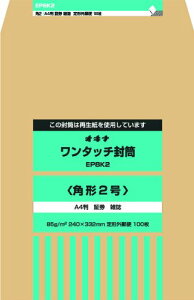 商品名 ワンタッチ封筒 100枚パック 角形2号 品番 EP8K2 仕様 特長:手を汚さずにワンタッチで簡単にのり付けできる封筒。お得なボリュームパックです。 ●主要用途:A4判・証券・雑誌 ●規格:角形2号...
