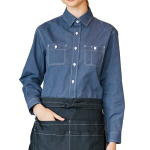 (アルベ) シャツ(長袖)(兼用) アルベ シャツ 兼用 長袖 ダンガリー デニム 襟付き ダブルステッチ SS~4L カジュアル 爽やか 動きやすい レストラン カフェ 厨房 制服 EP8605 C-5 ネイビー 日本 4L (日本...