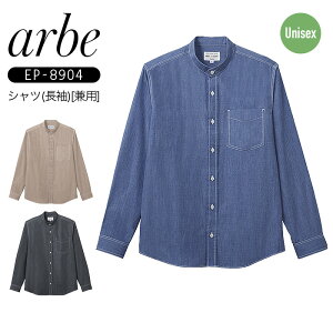 arbe スタンドカラーシャツ(長袖) EP-8243 白いストレッチが爽やかな印象を与えるダンガリーシャツ。 ダブルステッチでカジュアル感をアップさせました。 ●素材:ダンガリー ●混率:ポリエステル65%、綿35% ●サイズ SS...