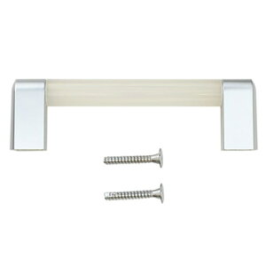 洗面化粧台用の汎用取手です。 取手の取付ピッチが90mmの洗面化粧台に適合します。 【仕様】 ●サイズ:取手サイズ106mm/取付ピッチ90mm ●材質:ABS樹脂(ブラケット部)/PMMA樹脂(センターパイプ部) ●色:シル