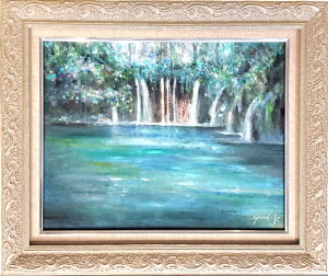 商品風景画(原画:油彩) 作家:Yumi Kohnoura、制作年:2024■ サイズ作品サイズ:F6(31.8×41cm) 額縁外寸約452×546mm、フレーム+マット幅約70mm■ 特徴「Lake to live...