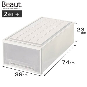 サイズ/約幅39×奥行74×高さ23cm。引出内寸:約幅29.8×奥行67.9×高さ16.6cm。重量/約3.44kg。内容量/同色2個セット。付属品:ゴム脚、前倒れ防止用ジョイント具、インデックスシール...