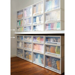 リピート買いしたくなる理由があります。豊富なサイズ展開と自在な組み合わせ方で、家中の空間にすっきりとフィット。手こずっていた収納も、フィッツケースがあれ
