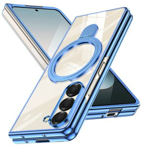 Galaxy Z Fold6 用 ケース リング付き クリア メッキ加工 耐衝撃カバー スタンド機能 車載ホルダー対応 PC 透明 軽量 電気メッキ 折りたたみ おしゃれ 一体型 ワイヤレス充電 ハード...