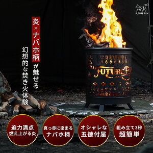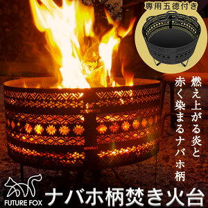 【FUTURE FOXナバホ柄焚き火台】 FUTUREFOX ナバホ柄焚き火台は名前の通り、焚火台側面全体にナバホ柄を透し彫りした焚き火台です。 焚き火自体を楽しむのはもちろん、たき火台から現れる赤く...