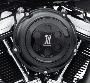 【商品説明】ダーク&クローム・カスタムを仕上げるのに最適なコレクションです。リッチブラックと「#1」ロゴがアクセントになります。標準装備のエアクリーナカバーのくぼんだ面にフィットします。粘着式で装着は簡単です。【備考】