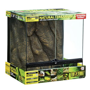 爬虫類・両生類飼育に最適なガラス製テラリウムケージ、グラステラリウム リアルな岩肌のバックグラウンド付! ヨーロッパ仕様の機能的でデザイン性に優れた爬虫類・両生類飼育用ケージ。 メンテナンスや給餌に便利な両開きのフロントド