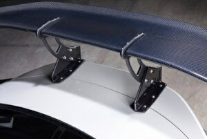 専用トランクリッドとの組み合わせで迫力とスマートさを両立させるGTウイング。カーボンウイング部:カーボン製(クリア塗装)ステー・翼端板:アルミ。