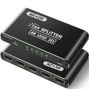 HDMI分配器 1入力4出力 同時出力 HDMI スプリッター ハブ 4画面 hdmi 増設 オーディオ同期 自動切替 4K 3D 1080p 複数出力 ミラーモード 接続簡単 PS5|Xbox|fire...