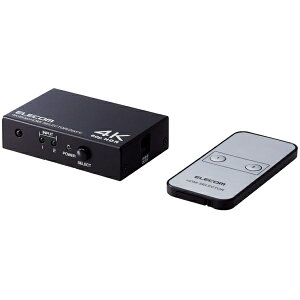 HDMI切替器/4K60P対応/2ポート/2入力1出力/専用リモコン付/ブラック。パソコンやゲーム機など2台のHDMI機器の信号を切り替えて、高画質・高音質のまま1台のディスプレイやプロジェクターなど...