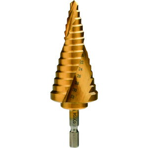 取寄せ品の為2〜3日(稼働営業日発送)【特長】●一本でいろいろなサイズの穴あけが可能です。【用途】●コードレス・100Vインパクトドライバ用。【仕様】●段数(段):14●シャンク径(mm):6.35●表面処理:チタンコーティング●穴あ...