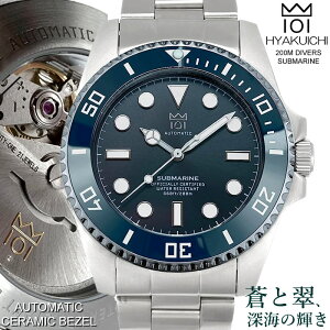 HYAKUICHI ヒャクイチ 腕時計 メンズ 自動巻き ダイバーズ 20気圧防水 機械式 手巻き機能付き セラミックベゼル 男性 オートマチック ウォッチ 101 デイト カレンダー 機械式セラミックベゼル...