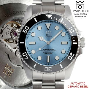 HYAKU1-007R HYAKUICHI ヒャクイチ 101 ダイバーズ メンズウォッチ ノンデイト 腕時計 20気圧防水 機械式腕時計 自動巻き セラミックベゼル アイスブルー ...