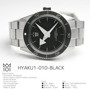 HYAKU1-007R HYAKUICHI ヒャクイチ 101 ダイバーズ メンズウォッチ ノンデイト 腕時計 20気圧防水 機械式腕時計 自動巻き セラミックベゼル サイドウォールエッチング+オール...