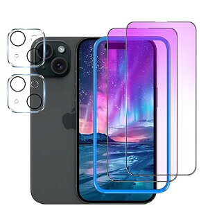 【ブルーライトカット 】 iPhone15Plus 用 ガラスフィルム 【2枚】+カメラフィルム 【2枚】【ガイド枠付き】 液晶保護 フィルム ブルーライト 強化ガラス アイフォン15プラス 用 (6.7インチ)...