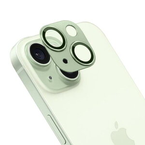 『2023最新設計』:Apapeyaカメラ保護フィルム iPhone 15/iPhone 15 Plus用 レンズカバー(グリーン)1枚。アルミニウム合金製 レンズ保護カバーの土台と2眼レンズ周囲はア...