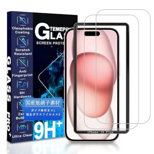 JCJCLY 対応 iPhone 15 Plus ガラスフィルム 6.7インチガイド枠付き 国産旭硝子素材製 アイフォン15プラス 用 保護 フィルム「硬度9H 耐衝撃 飛散防止 衝撃吸収 厚さ0.26mm超薄型...