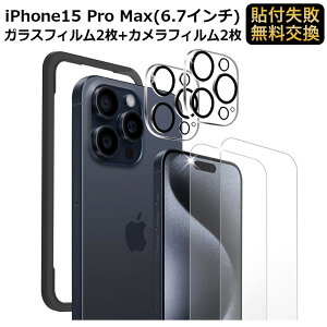 iPhone 15 Plus Pro Pro Max ガラスフィルム カメラ フィルム 保護フィルム 【ガイド枠付き】ガラスフィルム (2枚) レンズフィルム (2枚) アイフォン 15 プラス プロ...
