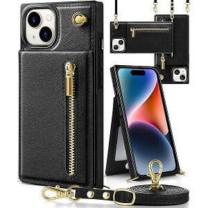 iPhone15plus 対応 スマホケース いphone15plus 肩掛け 首かけ 斜めがけ ショルダー PU革レザー ケース iPhone 15 Plus 多機能 チャック付き 財布型 カバー iphone15プラス...