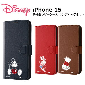 【商品説明】 イングレムから iPhone 15 Pro対応のミニーマウス_sitting2手帳型レザーケース シンプル マグネットケースが登場! カード収納+スタンド機能付き (C) Disney ICカードポケット...