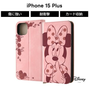 【商品説明】 イングレムから iPhone 15 Plus対応のミニーマウスとローズRaffineケースが登場! 表情豊かなむら染めレザーに映えるモノトーンのキャラクターデザイン (C) Disney...